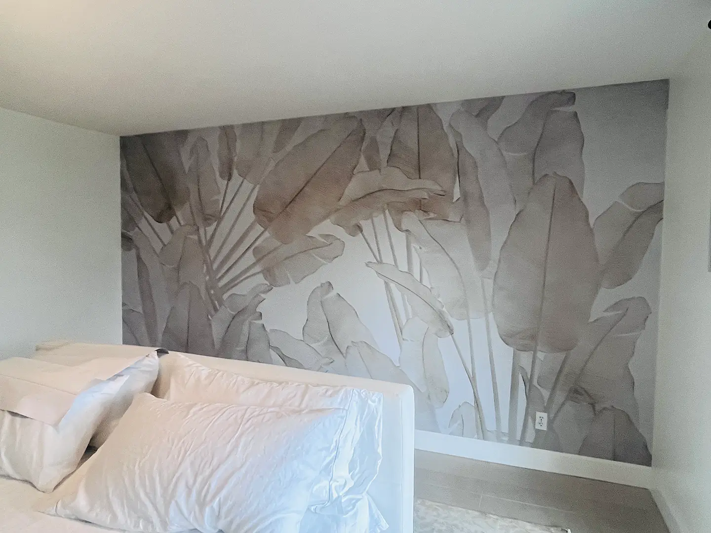 This creates a one-of-a-kind mural effect, perfect for a master bedroom accent wall. With several materials available, Vinyl is the best choice for long-lasting beauty and easy maintenance.